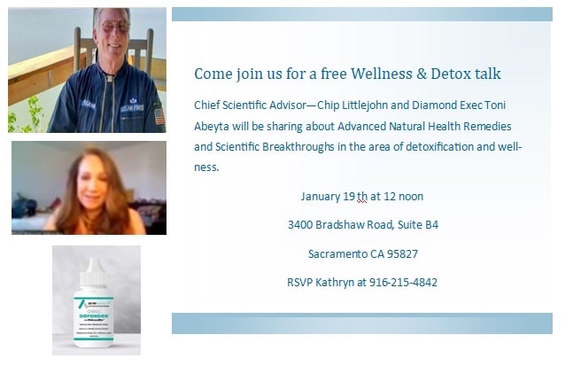 Chief Scientific Advisor-Chip Littlejohn and Diamond Exec Toni Abeyta will be sharing about Advanced Natural Health Remedies and Scientific Breakthroughs in the area of detoxification and well-ness.